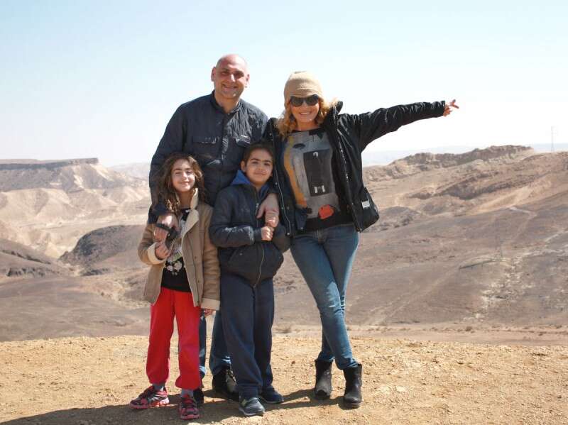 עם הבעל מישל והתאומים לביא ושירה. "אני צריכה לדעת לשחרר טיפה" // צילום: האלבום המשפחתי