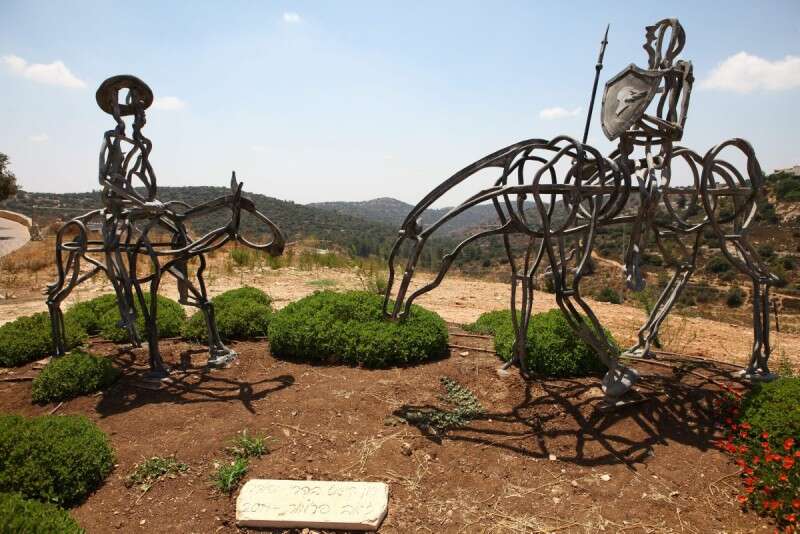 פסל של דון קישוט ונושא כליו, במטה יהודה. "צאצא אנוסים" // צילום: לירון אלמוג