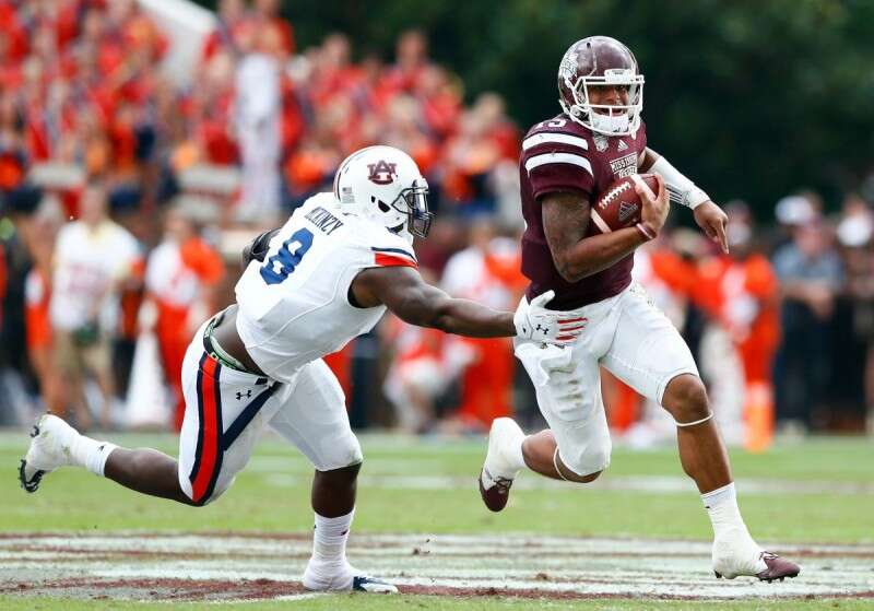 דאק פרסקוט, הקווטרבק של מיסיסיפי סטייט, בדרך לעוד טאצ'דאון מנצח // צילום: אי.אף.פי