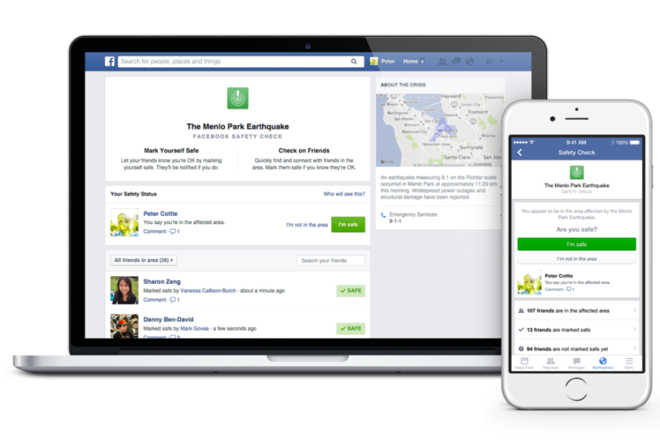 פייסבוק השיקה אפליקציה פנימית שנועדה לסייע למצוא קרובים וחברים בשעת חירום. "אנו רוצים לספק כלי שיסייע לאנשים במקרים של אסונות גדולים, ולכן יצרנו את safety Check, דרך פשוטה וקלה לומר שאתה בסדר ולבדוק מה מצב החברים והמשפחה", הודיעה פייסבוק.