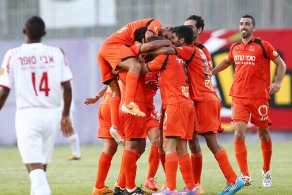 בדקה ה־28 איציק עזוז, המבוגר יחסית (29), הוא שפתח את חגיגת השערים בבעיטה אדירה מ־30 מטרים, שנעצרה רק ברשת. גל צרויה (בן 25) הכפיל בדקה ה־45 בשער לא פחות יפה (החמישי שלו העונה), כשהקפיץ באמנות מעל גל ניר.