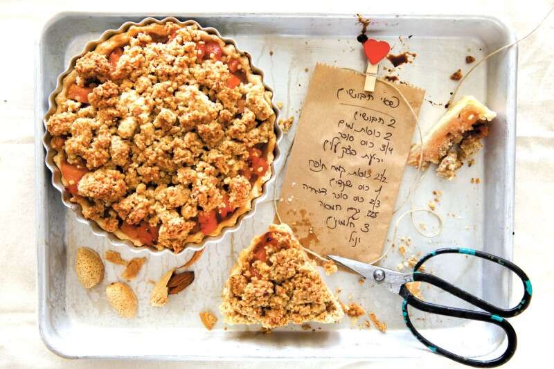 5. מסדרים מעל את החבושים ומכסים בשכבה נדיבה של פירורי הבצק.