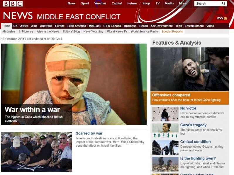 עמוד הבית של ענייני המזרח התיכון ב-BBC הבריטי לא מציין מילה על הפיגוע. כל הכותרות, שבע במספר, מדברות על הנזק והצורך בשיקום רצועת עזה.