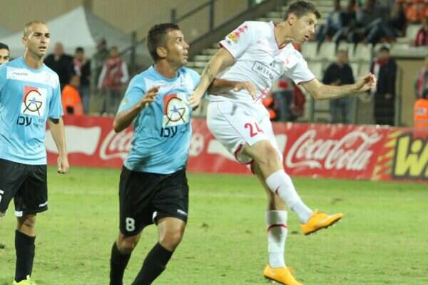 דקה 4: מצב ראשון במשחק להפועל ב"ש, אליניב ברדה בעט כדור חזק ושטוח שחמק ליד העמוד.