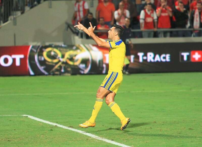 ההתגרות של זהבי באוהדי הפועל ת"א // צילום: אלן שיבר