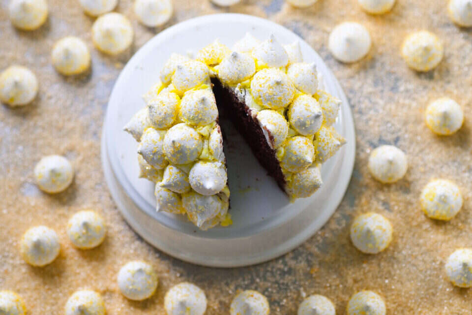מנה אישית המורכבת מעוגת שוקולד בניחוח הדרי בצורת חצי כדור, המצופה בנטיפי מרנג לימון שמצמידים לעוגה בעזרת קרם או קונפיטורה.