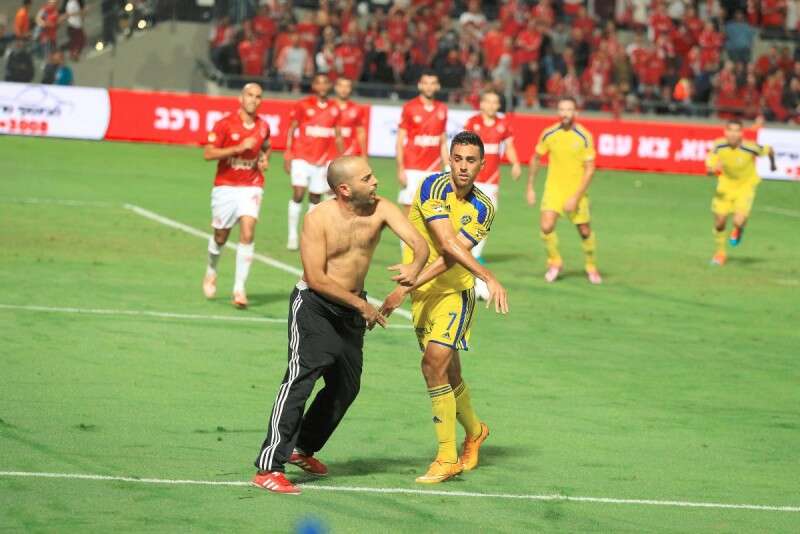 ערן זהבי מותקף על ידי אוהד הפועל ת"א בדרבי האחרון // צילום: אלן שיבר