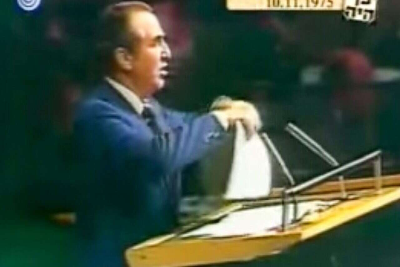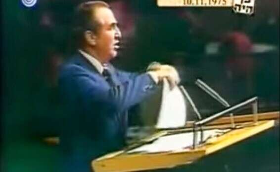 ב־10 בנובמבר 1975 התקבלה באו"ם החלטה הקובעת כי "הציונות היא צורה של גזענות ואפליה גזעית", כחלק מפעילות מתמשכת של בריה"מ ומדינות ערב נגד מדינת ישראל. השגריר הישראלי באו"ם, חיים הרצוג, נשא נאום־נגד ובשיאו קרע לגזרים נייר ובו נוסח ההחלטה, שבוטלה בידי האו"ם כעבור 16 שנה.