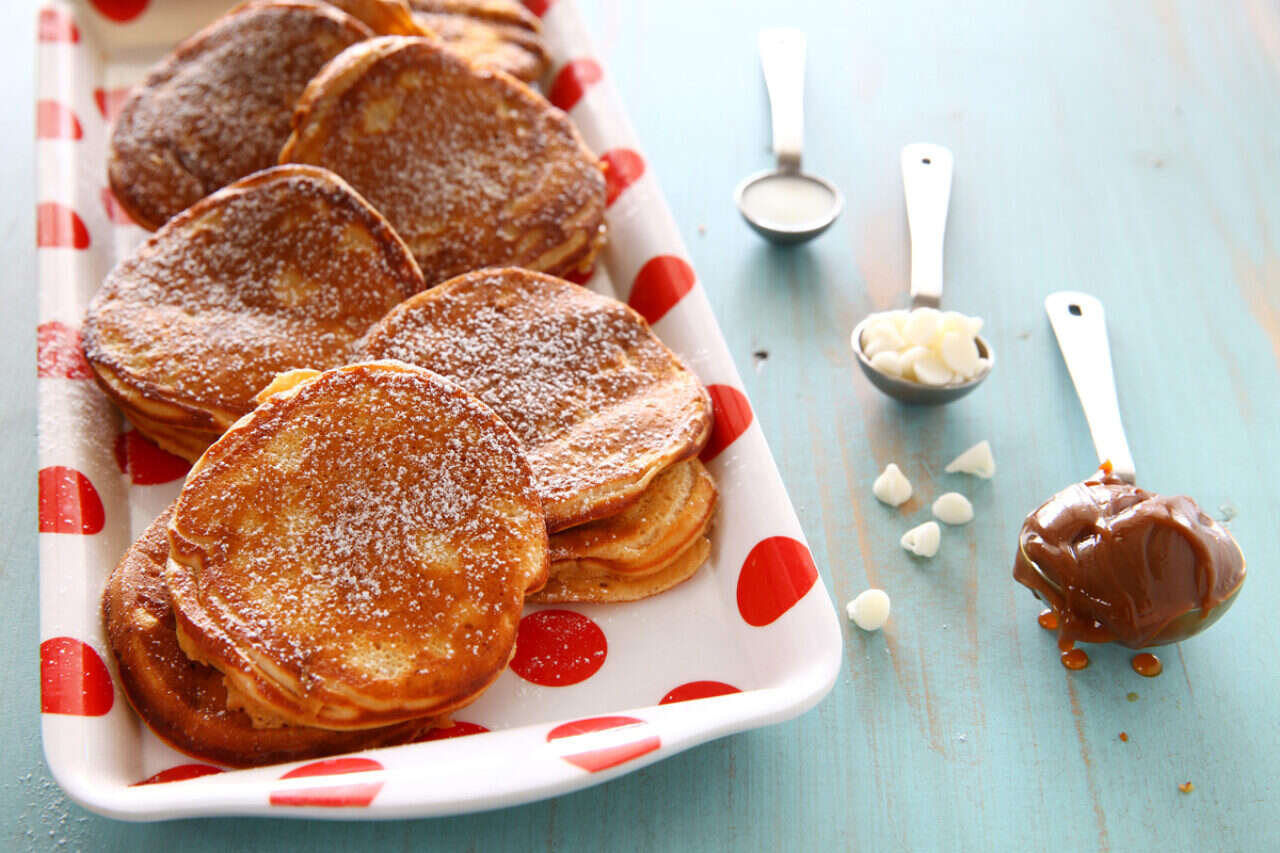 פנקייקס שוקולד צ'יפס לבן וריבת חלב