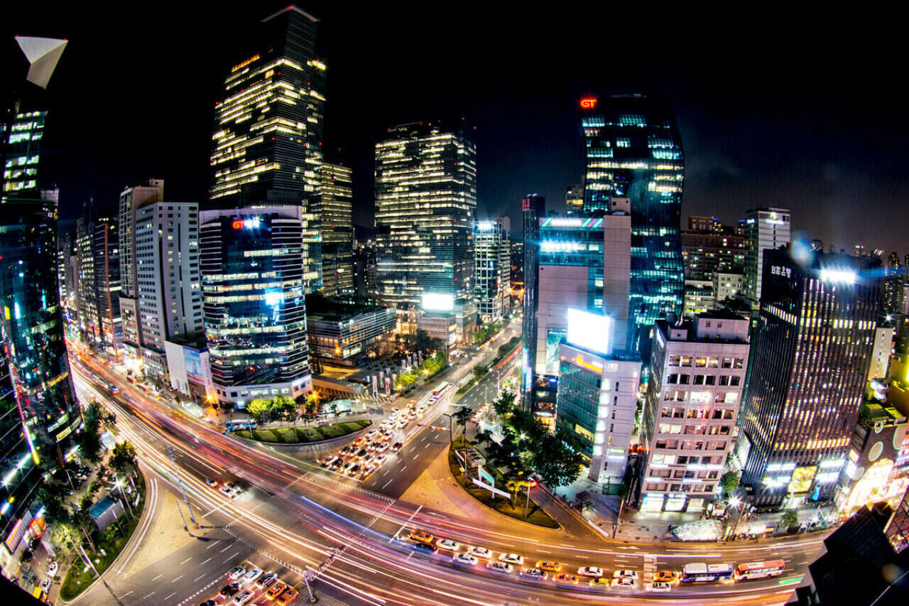 אנחנו צועדים ברחוב גאנגנאם, זה מהלהיט ההיסטרי, וכל האמביציה והמצוינות הדרום־קוריאניות מכות בנו בפנים. הרחוב, כמו האזור כולו, שגם הוא קרוי גאנגנאם (או קאנגנאם, כפי שהם מבטאים אותו), מסמל שפע ועושר, ולא בכדי. לכל אורכו גורדי שחקים שבקומותיהם הראשונות חנויות בגדים, אלקטרוניקה, מסעדות, בתי קפה ובנקים, והכל קצבי ואופנתי, וגם מערבי מאוד וממחיש את ההשפעה האמריקנית.