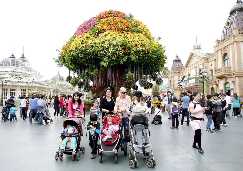 אימהות וילדיהן בפארק everland של סמסונג. קונים עגלות אמריקניות באלפי דולרים