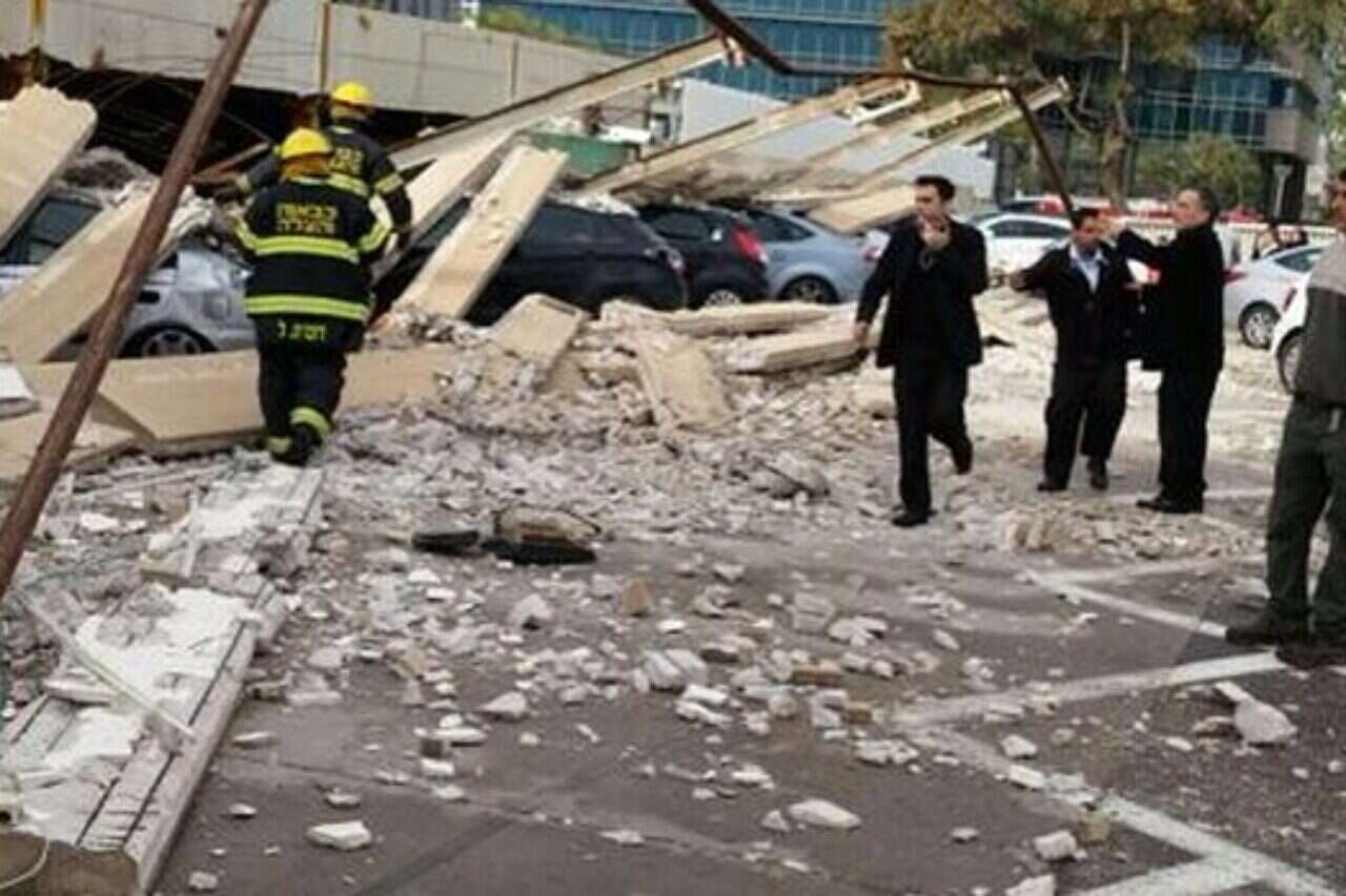 קיר בטון של מבנה חניון קרס ברחוב החושלים במערב העיר הרצליה. למרבה המזל לא נרשמו כל נפגעים. מספר כלי רכב שחנו במקום ניזוקו. שוטרי תחנת גלילות וצוותי הצלה ביניהם כבאים מתחנת כיבוי והצלה בהרצליה הגיעו לזירה. נפתחה חקירה במקום לבדיקת נסיבות האירוע.