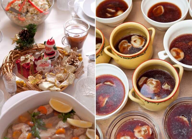 מרק סלק עם כיסוני אושקה (מימין) ושולחן חג המולד הפולני. כל המשפחות הפולניות, פולניות בדרכן שלהן