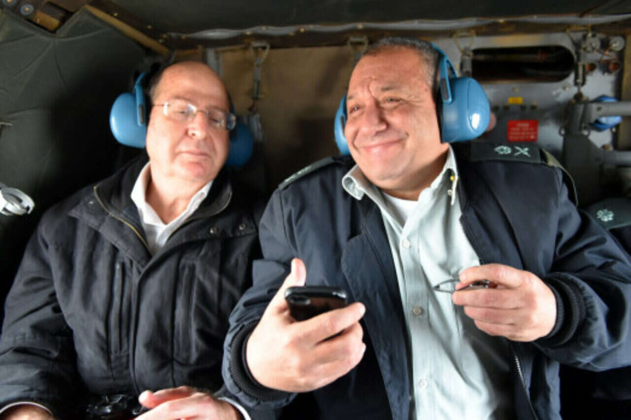 שר הביטחון יעלון עם הרמטכ"ל הבא האלוף אייזנקוט (מימין), והאלוף גולן - שימונה לסגנו // אריאל חרמוני - משרד הביטחון