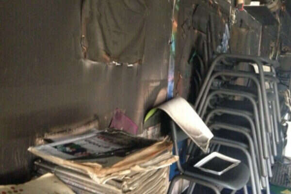 ההרס באחת הכיתות, שנגרם בעקבות ההצתה