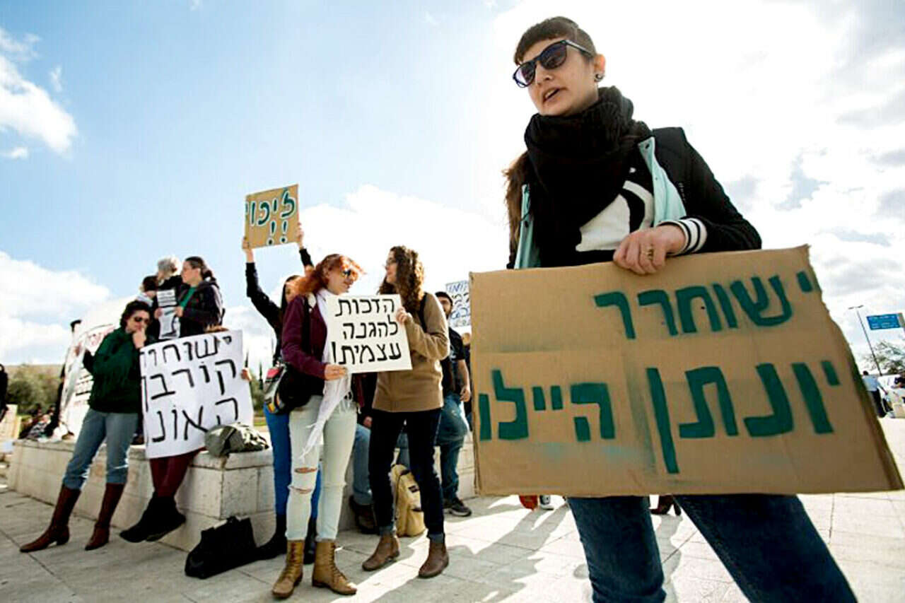 בזמן שביהמ"ש העליון בי־ם דן אתמול בערעורו של הצעיר יונתן היילו, שהורשע לפני כשנה ברצח של ירון איילין, שתקף אותו מינית פעמיים וסחט אותו, צעדו מאות פעילים למען זיכויו ברחבת ביהמ"ש.