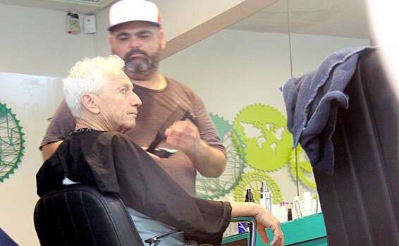 מוני מושונוב מתייצב אצל אבנר במספרה כדי לסדר את הפריזורה לקראת כניסת השבת. צילום: ניר פקין