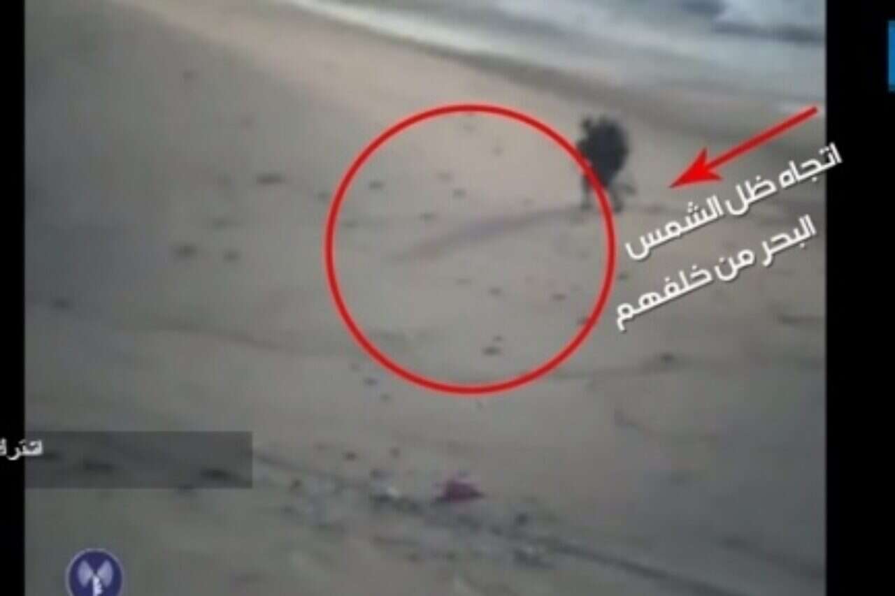 The leaked video shows two of the Hamas terrorists exiting the water, with subtitles reading "identification of the second naval commando pair, one kilometer north of the [Gaza] border. It should be noted that the first pair landed on the beach and was not spotted by cameras."