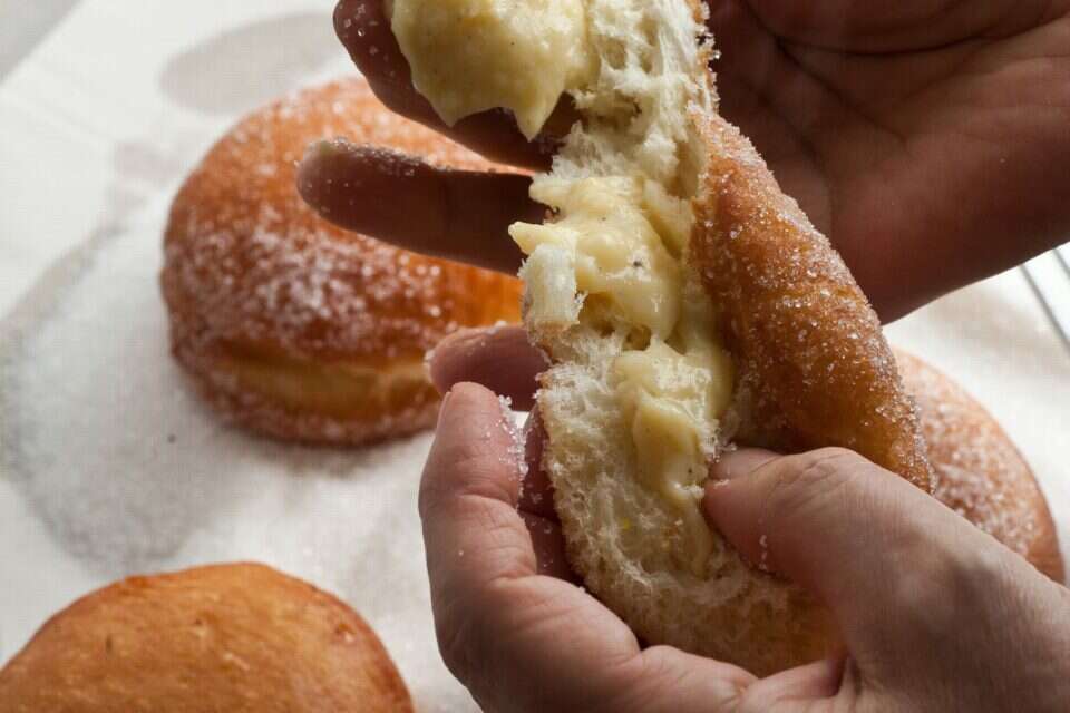 משגעות הסופגניות האלה, שבהן, כאמור, המילוי נטמן בבצק טרום טיגון. הן נולדו באימפריה האוסטרו־הונגרית, וחדרו אל איטליה דרך הצפון. העבודה מעט יותר מורכבת. עצתי לכם היא לעבוד בשילוב. להתחיל עם הבצק, ובזמן שהוא פורש לתפיחה לעבוד על הקרם.