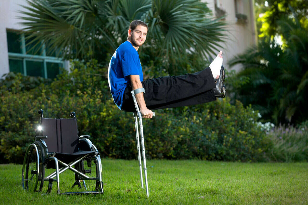 רגלו הימנית הייתה מונחת ישרה לפנים כדי להקל עליו את הכאב, והעייפות ניכרה בעיניו. הוא היה אז מ"ותיקי המחלקה", הפצוע הראשון שהגיע לכאן ממבצע צוק איתן, חדור מוטיבציה להחלים, לחזור ללכת ולחזור לצבא.