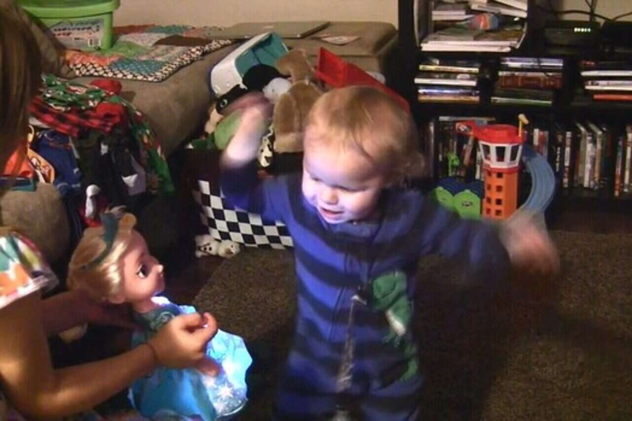 במשך שלוש הדקות בסרטון נראה הילד לצד בובה, ובכל פעם שלוחצים על הכפתור מתחיל השיר Let It Go מהסרט המצוייר. ברגע שבו הוא שומע את הצלילים הוא פוצח בריקוד חמוד וגורם לכולם לצחוק. הוא מבקש לשמוע את השיר פעם אחר פעם וכועס מאוד כאשר הוא לא מקבל את מה שהוא דורש.