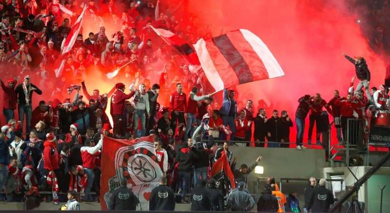 אבוקות ביציע אוהדי באר שבע // צילום: אלן שיבר