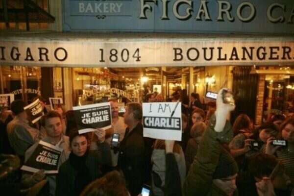 Massacre that left 12 dead after satirical paper published cartoons of the Prophet Muhammad claims more lives than any European terrorist attack in the past 50 years • Tens of thousands worldwide protest in solidarity, signs read "I am Charlie."