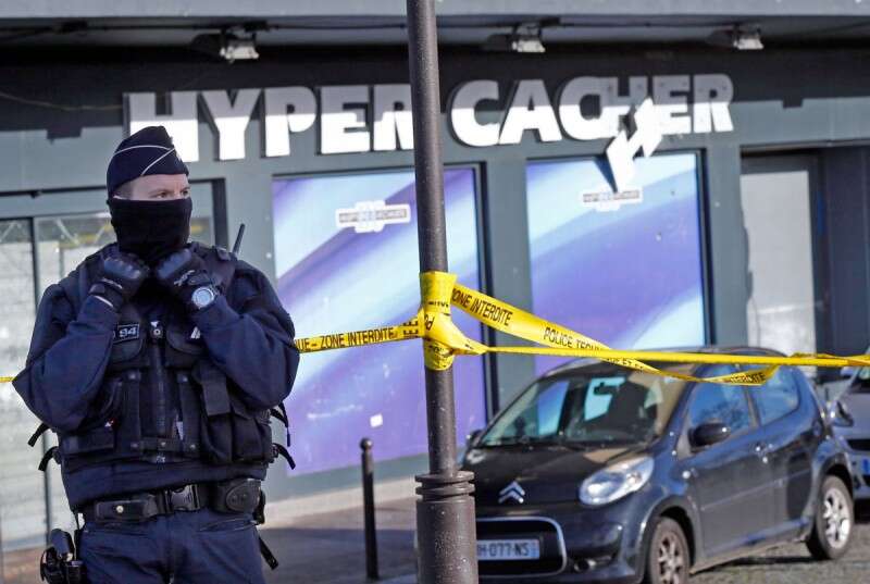 שוטר מאבטח את המרכול הכשר, אתמול // צילום: אי.פי.אי