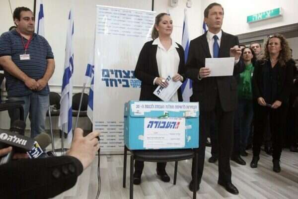 יו"ר העבודה, ח"כ יצחק הרצוג אמר כי הבחירות התנהלו כסדרם וכי מדובר ב"מופע מרהיב של דמוקרטיה". לדבריו, "אנו מפלגה רעבה שרוצה לנצח. הפעילים שמלווים אותה הרבה מאוד שנים רואים סיכוי לכך. יש לנו חבירה נכונה עם לבני וחבריה ואנו רואים אפשרות לנצח בבחירות". הרצוג החל להשתמש בסיסמת בחירות לפיה "אנו הולכים לגרוף למעלה מ-30 מנדטים".