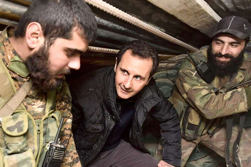 "הוא מתעסק עם חבורת פושטקים ולא רוצה להעיר את הבריון השכונתי". בשאר אסד עם לוחמים סורים // צילום: רויטרס
