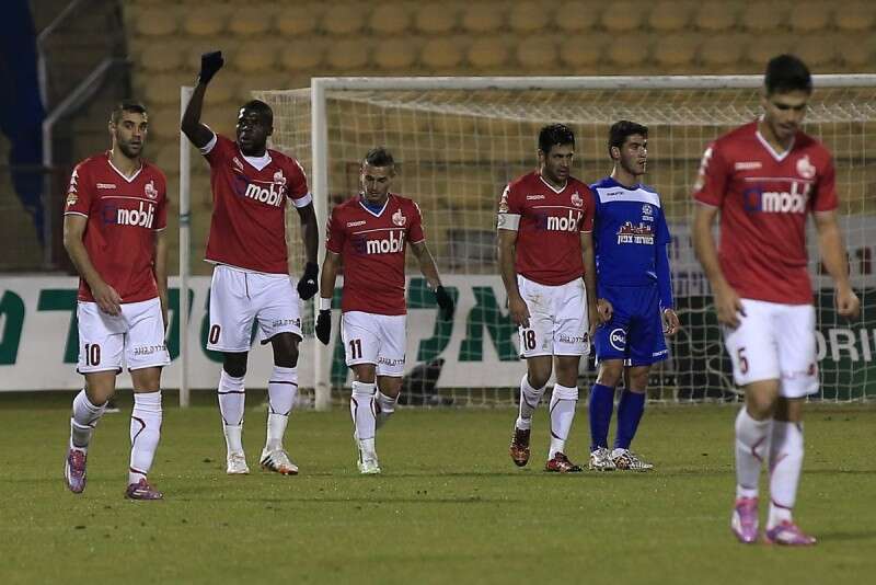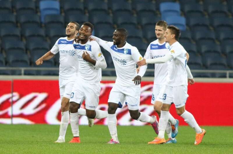 שחקני קריית שמונה חוגגים את שער הניצחון של קולה // צילום: יוסי שקל