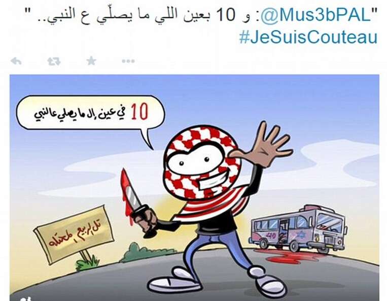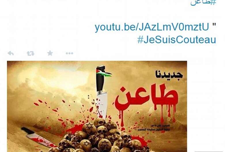 האשטאג עם הכתובית "#אני סכין", ואיור של סכין מדממת הפך לתופעה בשעות האחרונות, עם שיתופו ברשתות החברתיות על ידי מוסלמים קיצוניים ברחבי העולם הערבי, שהחליטו להפגין תמיכה במחבל.