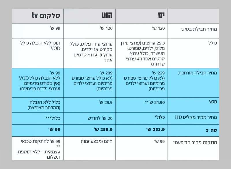 אחרי שנים ארוכות שבהן נשלט שוק הטלוויזיה הרב־ערוצית על ידי שתי חברות בלבד - יס והוט, מתחילה להיווצר תחרות. חברת סלקום הציגה לאחרונה את סלקום tv במחיר תחרותי של 99 שקלים בלבד לחודש, והשוק מתעורר לחיים.
