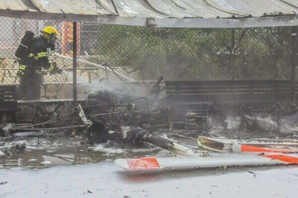 כוחות כיבוי אש הוזעקו גם הם לזירה, כשהגיעו הבחינו במטוס קל שעולה באש, הצוותים החלו בפעולות כיבוי עם קצף.