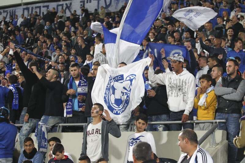 אוהדי אשקלון צבעו את שער 7 בכחול // צילום: עמי שומן