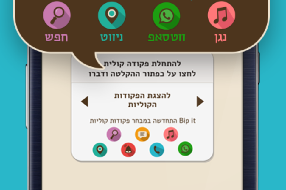בשורה בעולם הטכנולוגי: אפליקציית Bip it למשתמשי אנדרואיד פותחה במטרה לפתור בעיה מדאיגה – הקלדת הודעות SMS בזמן הנהיגה. זו האפליקציה הראשונה והבלעדית בעברית המאפשרת לכל נהג בפקודה קולית פשוטה לנהל את השיחות, הודעות הטקסט, הוואטסאפ, הניווט, יומן הפגישות והתזכורות ואפילו את המוזיקה שלו מבלי לשלוח יד אל מסך הטלפון או מבט בזמן נהיגה.