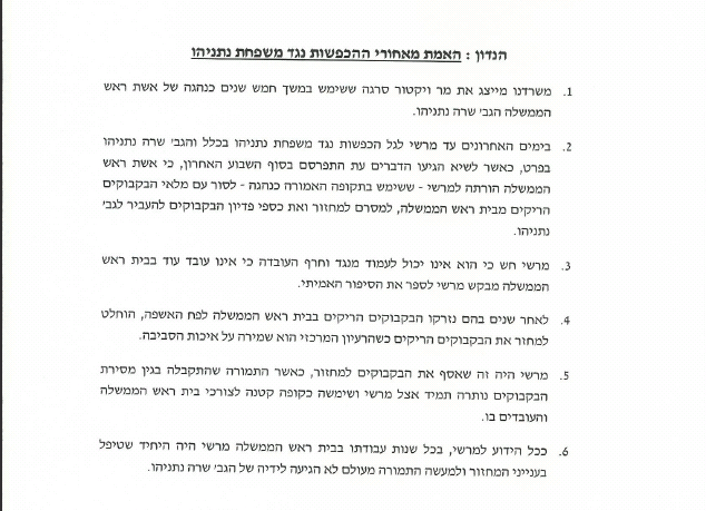 עוד נכתב כי "מרשי חש כי הוא אינו יכול לעמוד מנגד וחרף העובדה כי אינו עובד עוד בבית ראש הממשלה מבקש מרשי לספר את הסיפור האמיתי".