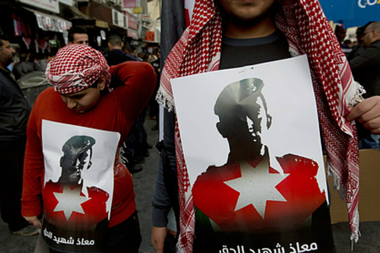 ברחבי ירדן הפגינו מאות בתמיכה במלך ירדן עבדאללה ונגד דאעש שהוציא להורג את הטייס. ההפגנות החלו עם סיום תפילות יום השישי. המפגינים אשר קראו קריאות בעד המלך עבדאללה וכנגד דאעש ביקשו כי חיל האוויר הירדני ימשיך בהפצצת מעוזי ארגון הטרור בסוריה ובעיראק. בהפגנה הגדולה שנערכה ביום שישי ברבת עמון הייתה לא פחות מאשר המלכה ראנייה רעייתו של המלך עבדאללה שצעדה יחד עם עשרות אלפי המפגינים שיצאו ממסגד אל חוסייני בבירה.