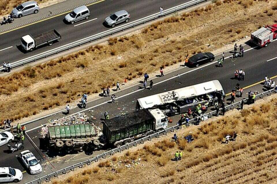 בשל עוצמת הפגיעה, חדרה המכולה לתוך צידו הימני של תא הנוסעים של האוטובוס. ממהירות האוטובוס ועוצמת ההתנגשות, המשיך האוטובוס להתקדם, תוך שהוא מתחכך עם הדופן הימנית שלו בדופן השמאלית של הנגרר והמשאית.
