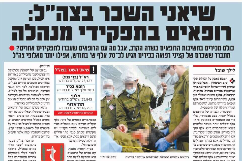 כזכור, על פי הפרסום בעיתוננו, רופאים בכירים בצה"ל, בדרגות אל"מ ותא"ל, מרוויחים קרוב ל־70 אלף שקלים בחודש ברוטו, ומשכורתם שנייה רק לזו של הרמטכ"ל. המשכורת הגבוהה של הרופאים בצה"ל יוצרת מצב אבסורדי, שלפיו הם מרוויחים בממוצע כ־15-10 אלף שקלים יותר מאשר אלופים, שמשתכרים כ־55 אלף שקלים בחודש.