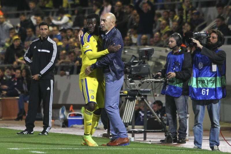 פאקו מחבק את איגייבור. הקהל חלוק בדעותיו לגבי הניגרי // צילום: עמי שומן