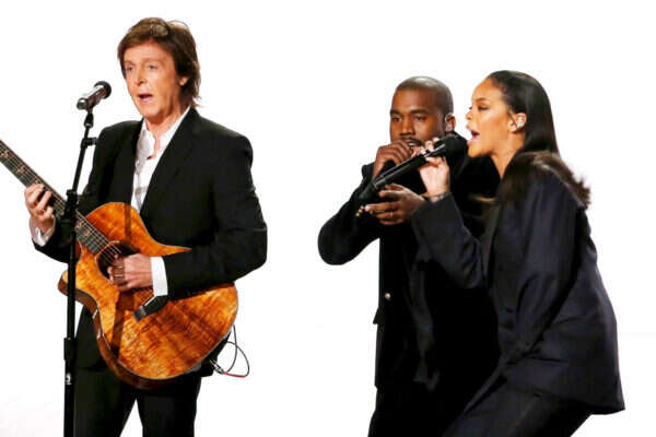 צילום: רויטרס // מקרטני עם ריהאנה וקניה ווסט בגראמי השנה. האם מדובר במתחזה?