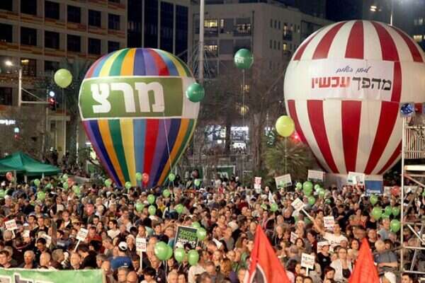 עשרות אלפי אנשים השתתפו הערב בעצרת השמאל בכיכר רבין בתל אביב. בעצרת שנערכה תחת הכותרת "ישראל רוצה שינוי" נכחו אלפי בני אדם שנשאו שלטים כמו "מהפך עכשיו", "ביבי הביתה", וכן סממנים מפלגתיים מרובים כמו שלטי מרצ בצבע ירוק ושלטים של תנועת "המחנה הציוני".