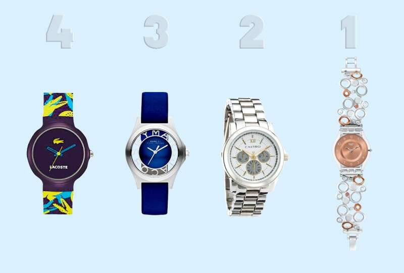 4. לה קוסט: קולקציות השעונים של המותג Lacoste מאופיינות בקשת רחבה של סגנונות - הסגנון העיקרי הוא הספורטיבי, אך לא רק. שעוני יד צבעוניים, אשר רצועתם עשויה מגומי גמיש עם הדפסים מדליקים. כל השעונים מלווים, כמובן, בחתימת התנין של המותג, עם קריצה צעירה ומרעננת.