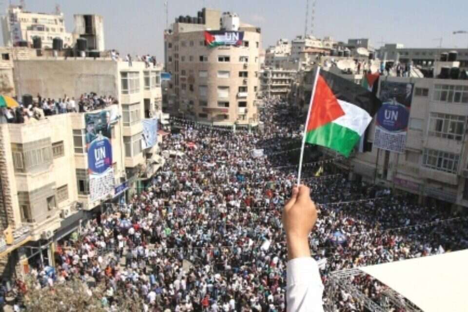 Thousands of Palestinians took to the streets on Wednesday to wave flags and celebrate the kickoff of their bid for statehood in the U.N. Town squares were filled in a show of support for Palestinian Authority President Mahmoud Abbas, who was at the U.N. in New York to submit an official petition for Palestinian statehood. The P.A. held a series of rallies last week in the run-up to the opening of the General Assembly, and was disappointed by the low turnout. It therefore declared Wednesday an official vacation day for civil servants and government officials, and also closed schools, sending thousands of students to the rallies. Some Palestinian Authority officials suggested that the rallies were mandatory. "We received information from civil servants who said they had been told explicitly that if they didn't show up to the rallies, they would not receive their pay for that day," one official said. "Students said that they were forced onto buses heading to Ramallah. Some paid supporters arrived from Jenin and the northern West Bank." Get the Israel Hayom newsletter sent to your mailbox! Wednesday's biggest rally took place in the center of Ramallah at Arafat Square, where 130 flags of countries that support Palestinian statehood waved in the wind. At the square, Palestinian Authority Secretary-General Tayeb Abed Rahim spoke to a jubilant crowd. He told the masses that Mahmoud Abbas remains steadfast in his bid to seek Palestinian recognition at the U.N. Security Council and achieve full U.N. membership. "We sought U.N. recognition only after negotiations reached a dead end," Rahim said. "Abbas knows that the Palestinian people stand behind him as he pushes to establish a Palestinian nation based on the 1967 borders," Rahim said. He also called on Palestinians to refrain from violence, telling the crowd, "We must continue our nonviolent struggle to become the U.N.'s 194th