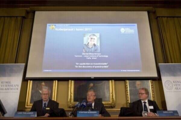 Israeli scientist Daniel Shechtman won the 2011 Nobel Prize in chemistry on Wednesday for his discovery of quasicrystals, a mosaic-like chemical structure that researchers previously thought was impossible. The Royal Swedish Academy of Sciences said Shechtman's discovery in 1982 fundamentally changed the way chemists look at solid matter. It initially faced strong objections from the scientific community, and even got him kicked out of his research group. Contrary to the previous belief that atoms were packed inside crystals in symmetrical patterns, Shechtman showed that the atoms in a crystal could be packed in a pattern that could not be repeated, the academy said. He was studying a mix of aluminum and manganese under his microscope when he found a pattern similar to Islamic mosaics that never repeated itself and appeared contrary to the laws of nature. "His battle eventually forced scientists to reconsider their conception of the very nature of matter," the academy said. Since then, quasicrystals have been produced in laboratories and a Swedish company found them in one of the most durable kinds of steel, which is now used in products such as razor blades and thin needles made specifically for eye surgery, the citation said. Scientists are also experimenting with using quasicrystals in coatings for frying pans, heat insulation in engines, and in light-emitting devices called LEDs. They were discovered in nature for the first time in 2009, according to the citation. "It feels wonderful," Shechtman, a distinguished professor at the Israel Institute of Technology in Haifa, told The Associated Press. Crystallographers always believed that all crystals have rotational symmetry, so that when they are rotated, they look the same. In 1982, in Washington, D.C., Shechtman first observed crystals with 10 points pentagonal symmetry, which most scientists said was impossible. "I told everyone who was ready to listen that I had material with pentagonal symmetry. People just laughed at me," Shechtman said in a description of his work released by his university. For months he tried to persuade his colleagues of his find, but they refused to accept it. Finally he was asked to leave his research group.