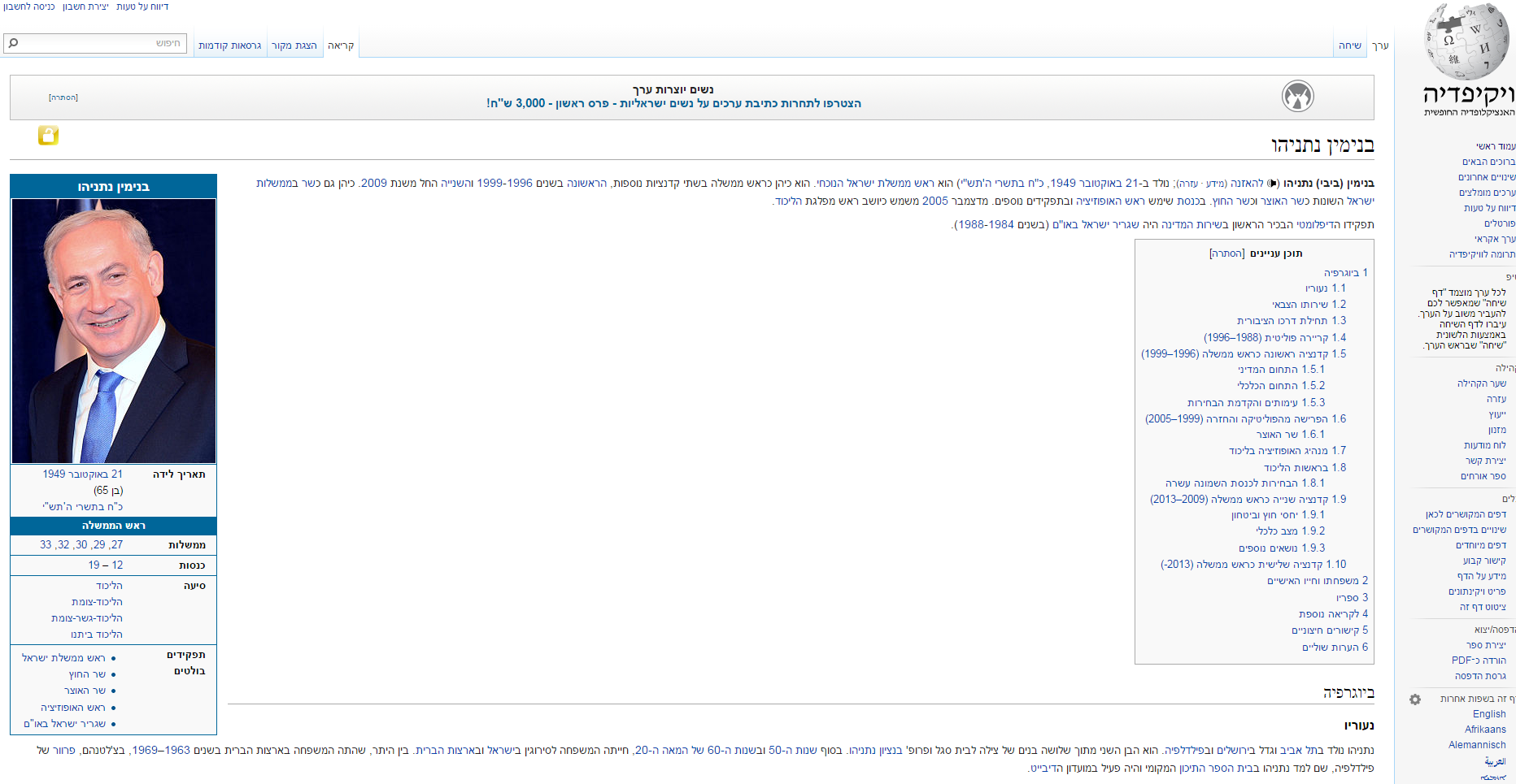 הערך בנימין נתניהו בוויקיפדיה // הערך בנימין נתניהו בוויקיפדיה