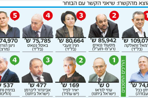 כ־109 אלף שקלים בשנה, לעומת אפס שקלים. זהו הפער העצום שהתגלה בין הח"כ שהיה שיאן ההוצאות בסעיף "הקשר עם הבוחר" בשנה החולפת - ג'מאל זחאלקה מבל"ד - ובין האחרון ברשימה - עוזי לנדאו.