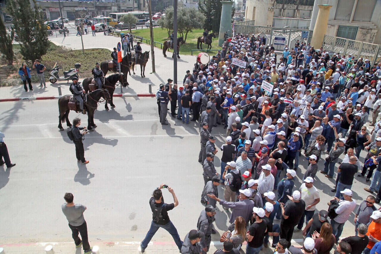 200 המאבטחים ששכרה ההנהלה לא יכלו לעצור את מאות העובדים שהגיעו להפגנה, והעובדים פרצו לתוך המפעל והפגינו בו תוך שהם צועדים לאורך כל המפעל ותרים אחרי עובדי קבלן שמבצעים עבודות ובכך פוגעים בשביתה. עובדי הקבלן ש"נתפסו על חם" התבקשו להפסיק את עבודתם ולעזוב את שטח המפעל והם אכן עזבו. הצעדה מלווה על ידי כוח משטרתי גדול.