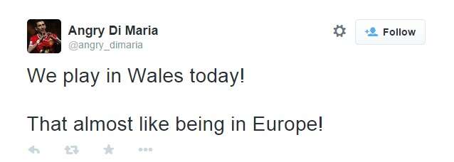 החשבונות שנפתחו בחו"ל זוכים להצלחה מסחררת ולמאות אלפי עוקבים. אחד הבולטים שבהם הוא החשבון הפיקטיבי של אנחל די מריה, "אנגרי די מריה" (angry_dimaria@) עם 159 אלף עוקבים. למרות שהארגנטינאי, שהפך העונה לשחקן היקר ביותר בתולדות הכדור הבריטי, חווה עונה די בינונית על הדשא באולד טראפורד, מדובר באחד מחשבונות הטוויטר הפיקטיביים הפופולריים בעולם הספורט, ובצדק. הוא עצבני, אין לו מעצורים וכולם חוטפים ממנו בראש, מוויין רוני דרך לואי ואן חאל ועד לסטיבן ג'רארד ושאר שחקני היריבות.